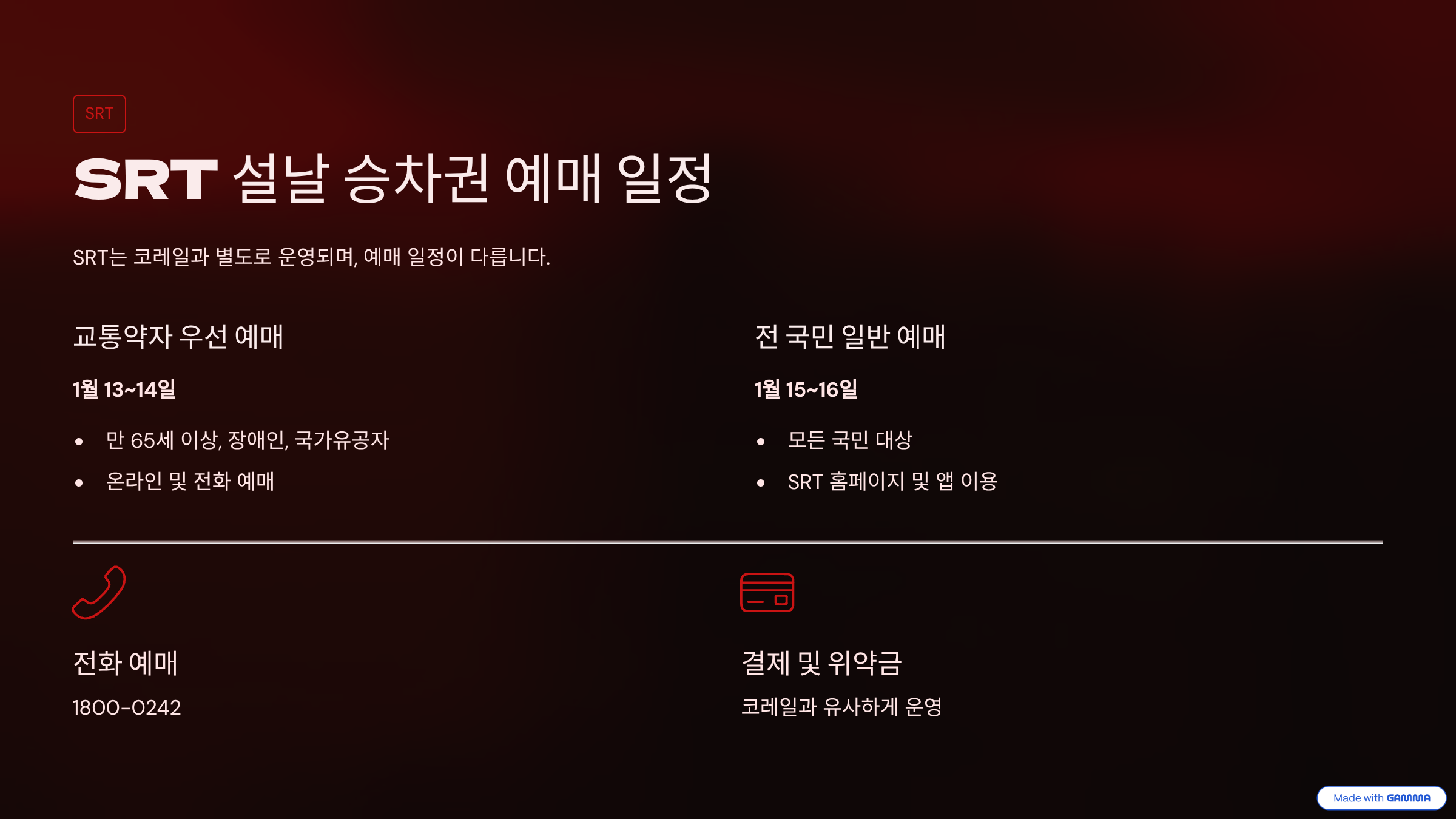- 1일차 (교통약자 우선): 고령자, 장애인, 국가유공자를 대상으로 전체 좌석의 10%를 우선 배정합니다. (오전 9시~오후 3시 예상)