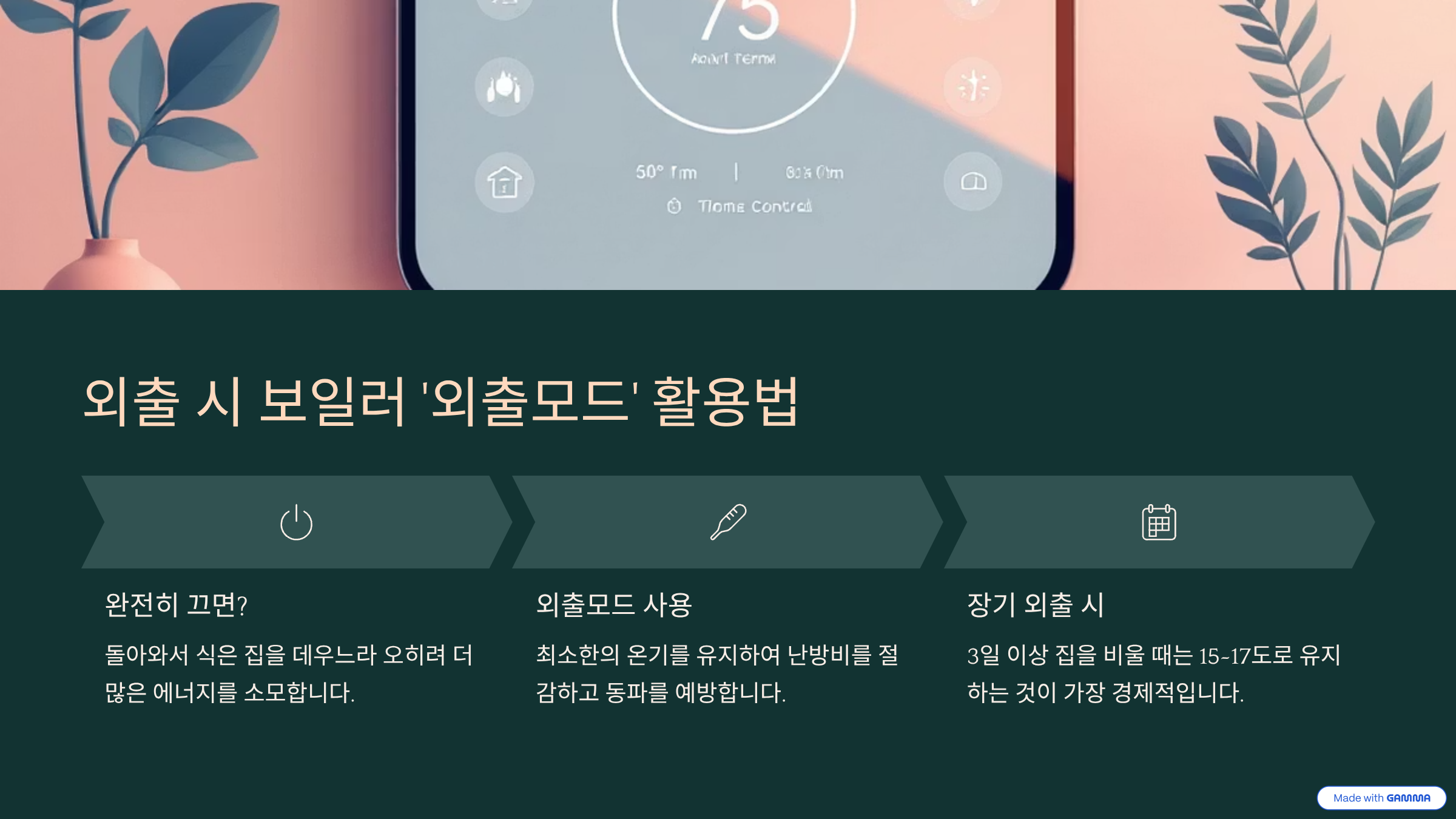 1. 외출 시 보일러 관리: '끄기' vs '외출 모드' vs '온도 낮추기'