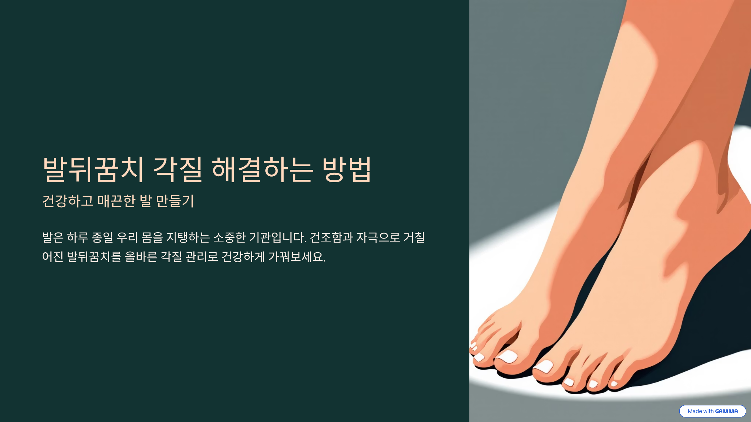 발뒤꿈치 관리는 단순히 미용의 문제가 아닙니다. 갈라진 틈 사이로 균이 침입하면 하지 봉와직염과 같은 전신 질환으로 번질 수 있는 위험이 있습니다. 오늘부터는 손톱깎이 대신 따뜻한 물과 보습 크림으로 소중한 발을 아껴주세요. 꾸준한 관리는 배신하지 않습니다.